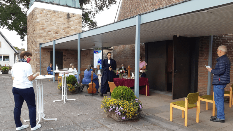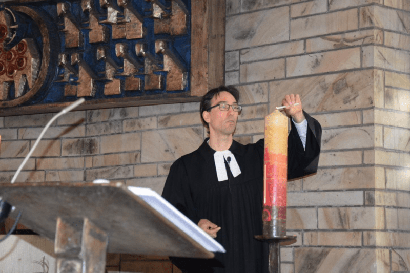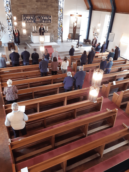 Am 10. Mai 2020 war es wieder soweit. Die Johanneskirchengemeinde konnte wieder Gottesdienst in der Kirche feiern. Abstand und Hygieneregeln waren zu beachten, Familien konnten nebeneinander Platz nehmen. Pastor Simon Kramer begrüßte die Gemeinde mit Hinweisen zum Ablauf des Gottesdienstes und führte durch den liturgischen Gottesdienstteil.