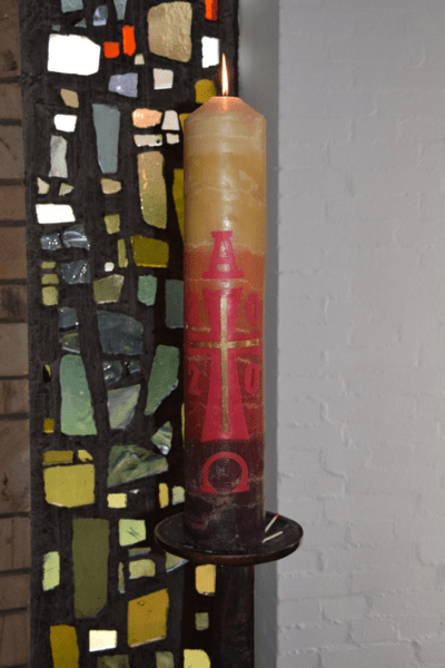 Die Osterkerze 2020 konnte endlich entzündet werden. Die Familien Lange und Regula hatten die neue Kerze gegossen bzw. die Verzierungen angebracht. Ganz herzlichen Dank dafür.