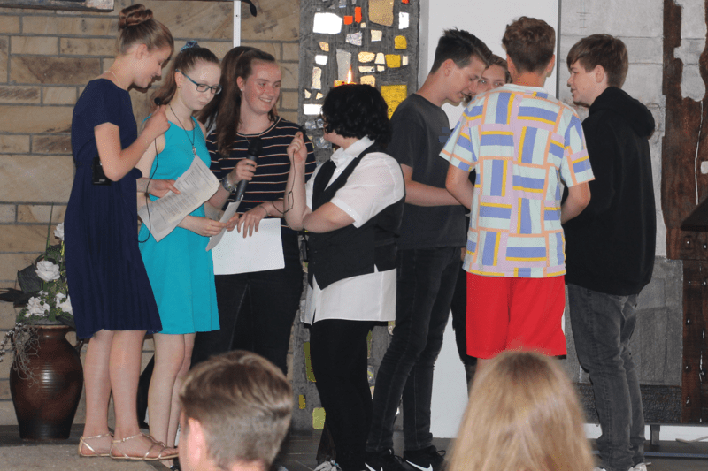 Weit voraus ins Jahr 2046 dachten sich unsere diesjährigen Konfis in ihrem Vorstellungsgottesdienst. Wie wird es wohl sein, wenn sie sich - wie das so ist - aus den Augen verloren haben und nach 25 Jahren zu ihrer Silbernen Konfirmation wiedersehen?