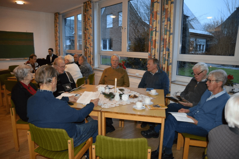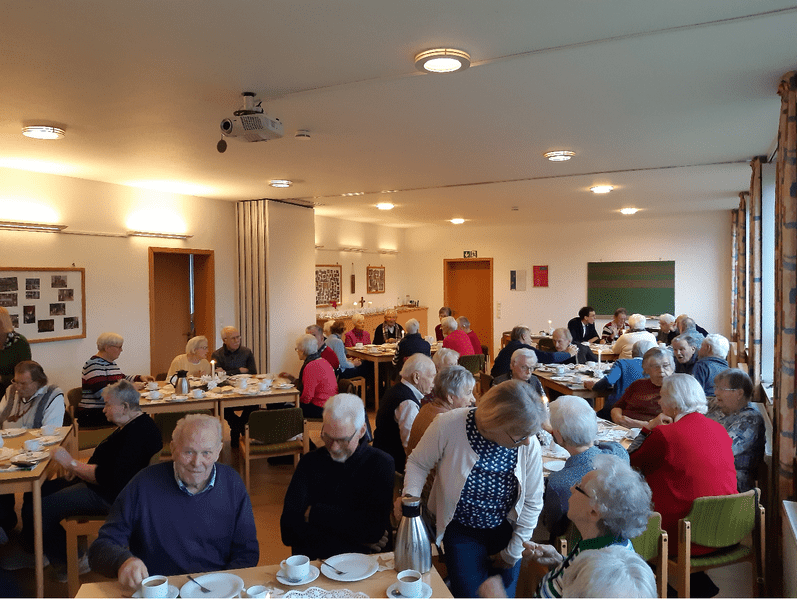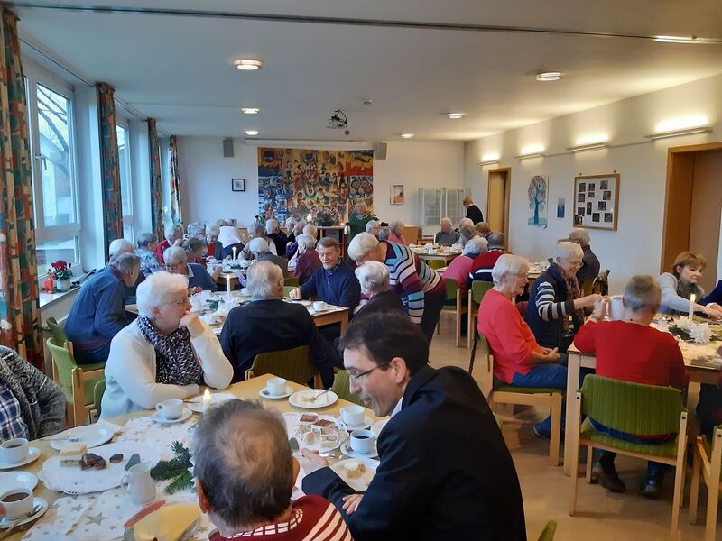 Es war wieder gemütlich im Gemeindehaus. Die Kirchengemeinde gemeinsam mit dem Seniorenkreis hatte zur Seniorenadventsfeier eingeladen. Ruth Perthen und Ruth Jarecki hatten mit Unterstützern den Gemeindesaal geschmückt, Kaffee gekocht, Kuchen und Gebäck mitgebracht. Der Saal war wieder gut gefüllt. Die Seniorinnen und Senioren freuten sich über das Wiedersehen. Das war den intensiven Gesprächen an allen Tischen zu entnehmen. Pastor Simon Kramer begrüßte die Gäste. Er begleitete auch die Adventslieder am Klavier. Nach dem Kaffee lasen Ruth und Peter einige Geschichten und Gedichte vor. Weitere Adventslieder wurden lautstark gesungen. Wiegand hatte wieder sehr viele Fröbelsterne gebastelt und jeder konnte einen mitnehmen. Ein gelungener Nachmittag.