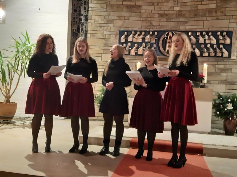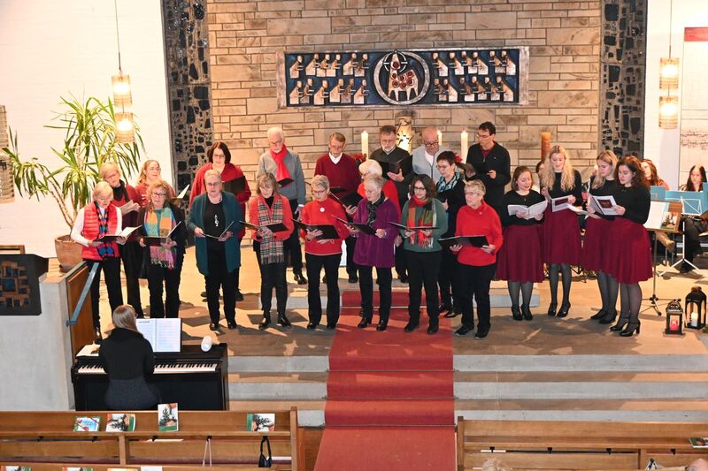 Das Adventskonzert am 3. Advent war der Tradition folgend eingebunden in den Offenen Adventskalender. Die Johanneskirche war gut gefüllt, der Posaunenchor eröffnete den Konzertabend mit dem Stück: „Deck the Hall“. Das Programm hatten Stephanie Laymann, Dirk Haeberle und Simon Kramer zusammengestellt. Pastor Simon Kramer übernahm auch die Moderation. Dirk dirigierte den Posaunenchor und spielte die Orgel, auch zur Begleitung der Gemeindelieder. Die Gemeinde sang dann auch gleich „Wir sagen euch an den lieben Advent“. Die beiden nächsten Stücke der Johki-Gospelsingers erklangen unter der Leitung von Stephanie Laymann, die den Chor am Klavier begleitete. Immer wieder durfte die Gemeinde Adventslieder singen, es war ein aktives Adventskonzert.