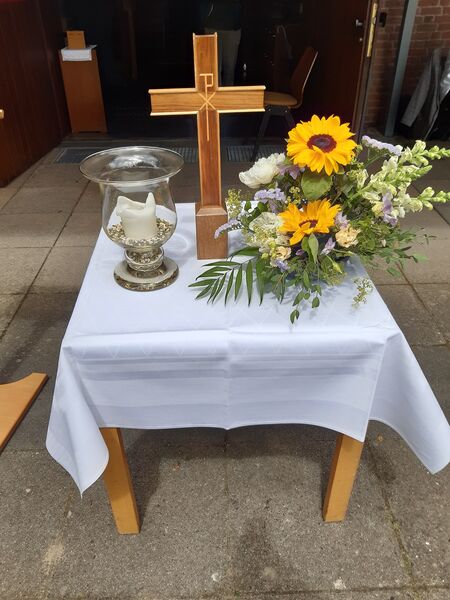Die Johanneskirchengemeinde hatte das Johannesfest früh und an vielen Werbepunkten in Vehrte angekündigt. Doch die Erwartungen wurden nicht erfüllt. Im Vergleich zu früheren Jahren waren schon beim Gottesdienst viele Plätze unbesetzt. Der Posaunenchor, auch nur in kleiner Besetzung, stimmte unter der Leitung von Dirk Haeberle zum Feiern ein. Pastor Simon Kramer predigte über die drei Gleichnisse, in denen Jesus von verlorenen Menschen, Schafen oder Münzen spricht. In den Gleichnissen wird das Verlorene wiedergefunden und der Finder feiert daraufhin ein Fest.