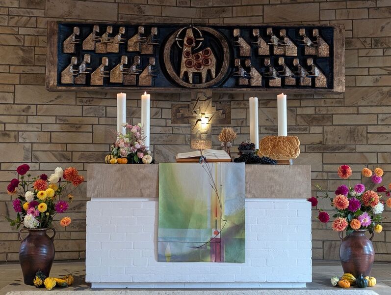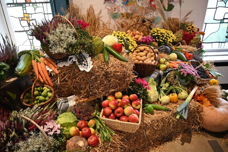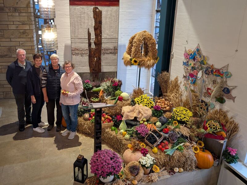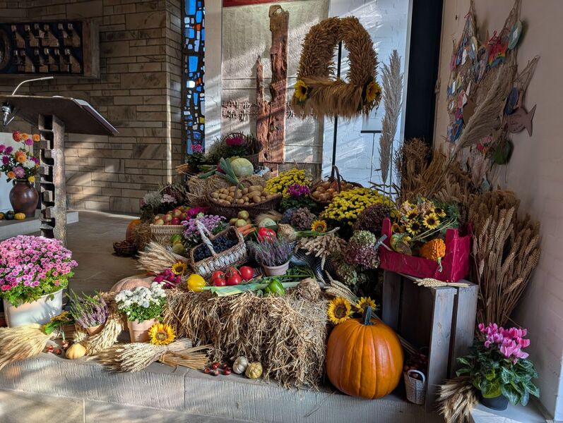 Auch in diesem Jahr feierte die Johanneskirchengemeinde den Gottesdienst zum Erntedank wieder in der Johanneskirche. Ein bewährtes Team hatte Erntegaben mitgebracht und im Altarbereich aufgebaut. Brot mit Symbolen zum Erntedank war gebacken und auf dem Altar platziert. Es sah wieder nach Dank aus, Dank für die Gaben der Ernte in Garten und Feld. Nach dem Gottesdienst wurde das Brot vom Altar aufgeschnitten und mit Butter und Marmelade bestrichen gemeinschaftlich gegessen. Dazu stärkte Kaffee die Gottesdienstbesucher.