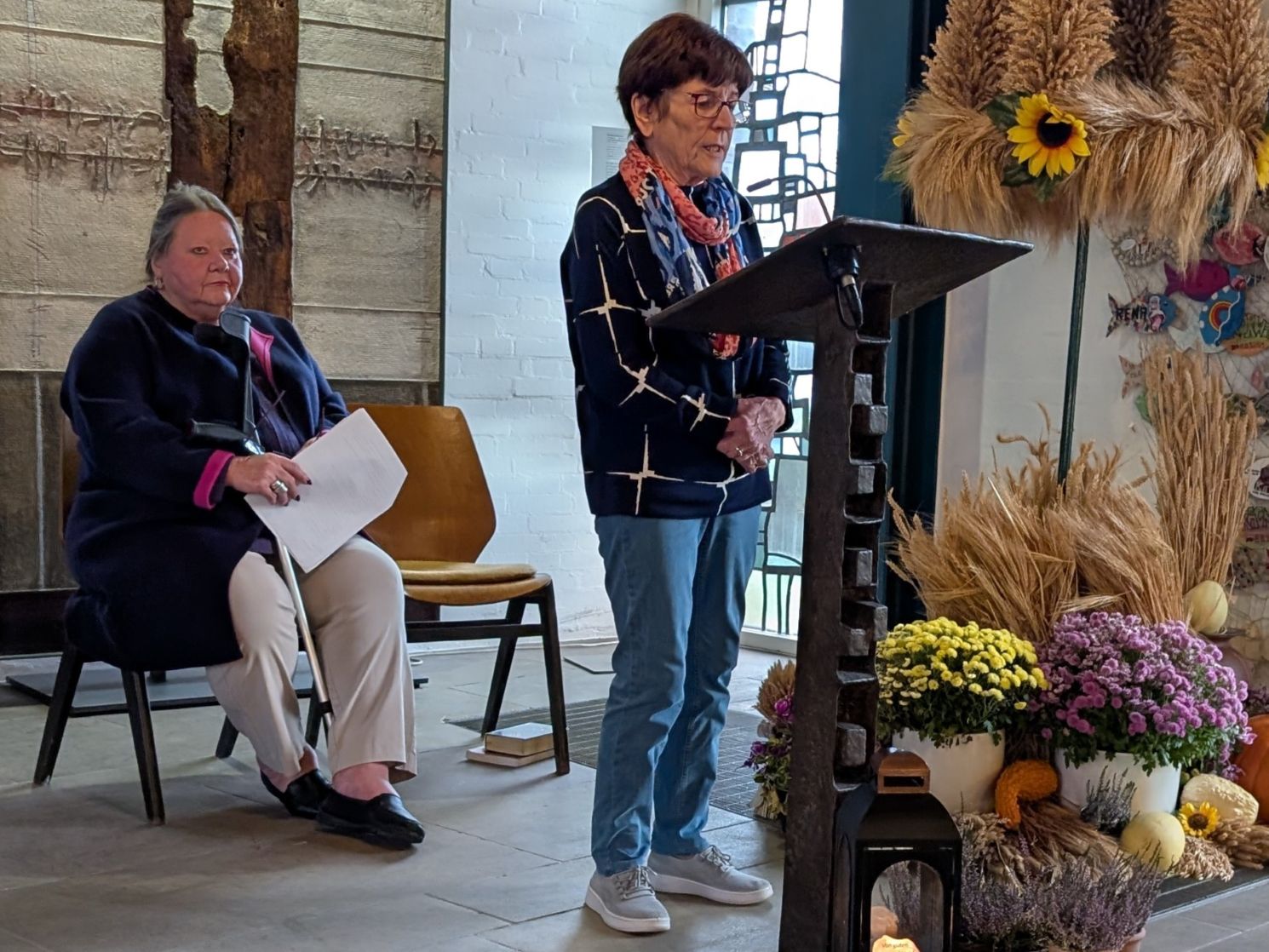 Das Team der Bücherei unserer Johanneskirchengemeinde hatte wieder gemeinsam mit Prädikantin Marion Wiemann den Literaturgottesdienst vorbereitet. Marion Wiemann begrüßte die Gottesdienstbesucher und stellte den Roman „Der Apfelbaum“ von Christian Berkel vor. Das Team der Bücherei lass Texte aus dem Buch vor. Es ging um Gespräche eines Jugendlichen mit Eltern und weiteren Familienangehörigen unterm Apfelbaum. Der Jugendliche fordert von der älteren Generation Antworten zu verschiedenen Themen. Diese enthalten aber Widersprüche oder Lücken. Wie entsteht da Vertrauen? Die Texte animieren zur Beschäftigung mit der eigenen Familiengeschichte. Das Buch „Der Apfelbaum“ kann in der Bücherei ausgeliehen werden.
