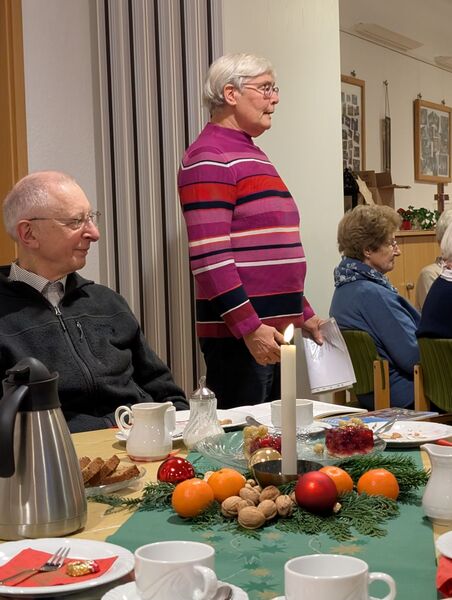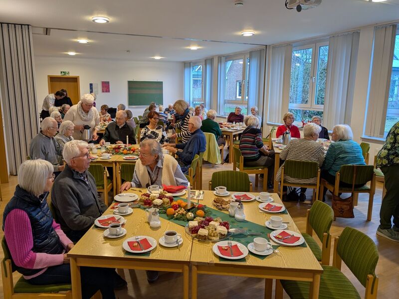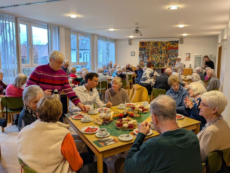 Die Johanneskirchengemeinde hatte ihre Seniorinnen und Senioren mit Brief zur Seniorenadventsfeier am 10. Dezember ins Gemeindehaus eingeladen. Zahlreiche Gemeindemitglieder hatten sich bei Ruth Perthen angemeldet. Im Gemeindesaal wurden dementsprechend die Tische aufgestellt und adventlich dekoriert. Kaffee, Tee, Kuchen und Gebäck standen bereit. Pastor Simon Kramer begrüßte die Gäste und begleitete die gemeinsam gesungenen Adventslieder am Klavier. Beim Genießen der köstlichen Kuchen wurde wieder viel an den Tischen gesprochen und erzählt. Umrahmt vom Singen lasen Ruth Perthen und Sigrid Dieckmann Texte und Gedichte zum Advent. Die Texte regten zum Nachdenken an, waren aber auch humorvoll und wurden mit viel Beifall bedacht. Eine junge aus der Ukraine geflüchtete Frau spielte außerdem ein Klavierstück. Nach zwei Stunden intensiver Unterhaltung, Singen und Zuhören wünschten Ruth und Ruth den Gästen einen guten Heimweg und ein gesegnetes Weihnachtsfest.