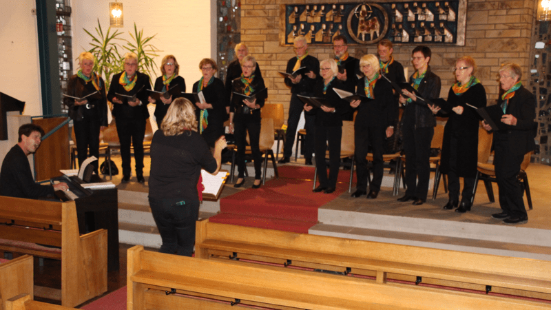 Die Textbeiträge betonten auch, dass die Gemeinschaft des Chores offen für weitere Sängerinnen und Sänger ist. Die musikalische Leitung des Gottesdienstes hatte Ellen Eilermann als Chorleiterin übernommen. Am E-Piano wurde der Chor von Michael Wilker unterstützt und die Orgel wurde von Dirk Haeberle gespielt.