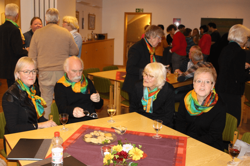 Nach dem gut besuchten Gottesdienst wurde Gemeinschaft weiter im Johanneshaus gelebt. Viele kleine Gesprächsgruppen stärkten sich bei Wasser, Tee, Wein und Gebäck. Auch beim Aufräumen wurde dem Thema entsprechend gemeinschaftlich gehandelt.