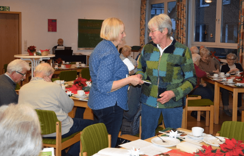 Es waren nur wenige Plätze freigeblieben. Die Leiterinnen des Frauenkreises I Ruth und Ruth hatten den Saal im Johanneshaus weihnachtlich geschmückt, die Tische dekoriert, Kerzen angezündet und Kuchen und Kaffee vorbereitet. Pastor Simon Kramer begrüßte die Gäste, Dirk Haeberle spielte passende Musik am E-Piano.